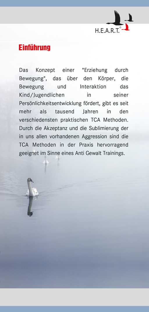 Das Konzept einer "Erziehung durch Bewegung", das über den Körper, die Bewegung und Interaktion das Kind/Jugendlichen in seiner Persönlichkeitsentwicklung fördert, gibt es seit mehr als tausend Jahren in den verschiedensten praktischen TCA Methoden. Durch die Akzeptanz und die Sublimierung der in uns allen vorhandenen Aggression sind die TCA Methoden in der Praxis hervorragend geeignet im Sinne eines Anti Gewalt Trainings.